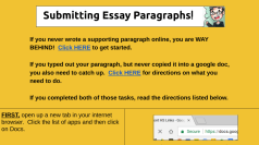 NEXT, complete the writing of your first and second supporting paragraphs on a google doc (If you have not finished already).